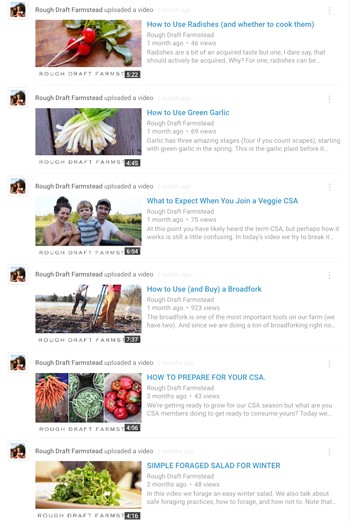 But what about social media sites like YouTube? This is the site I mentioned above that has more users than Facebook—five percent more according to Pew Research. I was blown away by that statistic, and though none of my experts really spoke about YouTube, we have been uploading videos about how to use different items in our CSA—how to cook, store and clean—for our shareholders. There is a lot of potential there, and it is worth exploring as another social media option for telling your story and engaging.