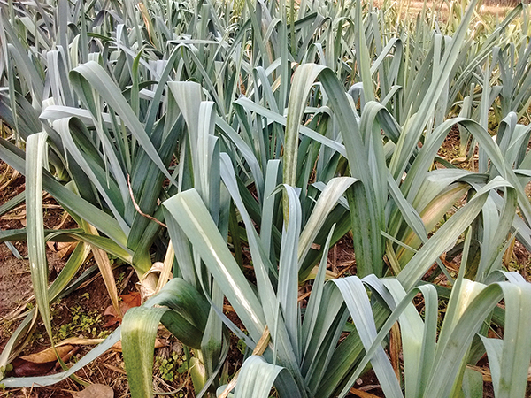 Tadorna winter-hardy leeks in December. Photo by Pam Dawling.