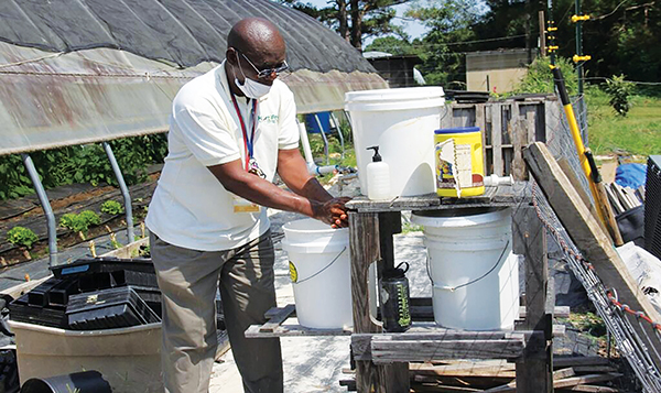 The elbow-operated hand washing station that won the DIY category of the 2022 CAFF Small Farm Innovation Challenge.