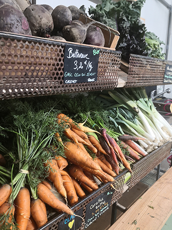 Some shops have two different sections: organic and conventional. Most have a quality charter where farmers explain how they work and what practices they prohibit, such as heated greenhouses or meat from intensive farming.
