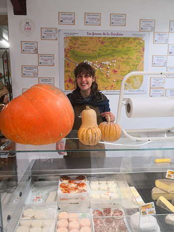Camille is both a farmer and an employee at this magasin de producteurs.