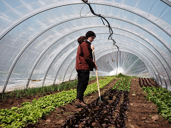 Cultivating in a caterpillar tunnel. It can be difficult to stand up on the edge beds. All images courtesy of the author.