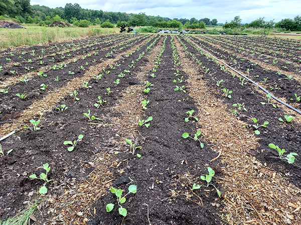 We have a high water table, good water, and a well-developed watering infrastructure, and I improve it every year. We continue to minimize moving hoses and added pulse watering this year. We learned to water often (every day during the heat of summer) to maintain soil biology and high yields. For example, when germinating direct seeded crops or establishing transplants, I water every day, or two times a day for carrots until germination or roots have established.