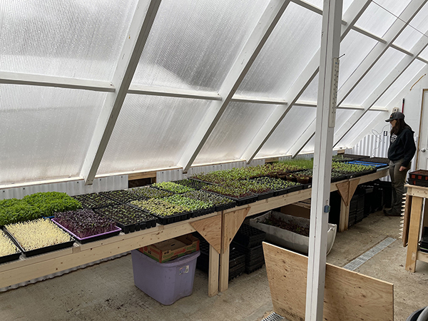 We did however have some microgreens dry out on super hot and sunny days as we were getting used to the building. Baby greens are already vulnerable, so in addition to the shallow soil trays used for microgreens, they just didn’t have enough moisture to survive. We learned quickly that we needed to move microgreens to the back wall, so they were never in direct sunlight. They seemed to do just fine there with some occasional rotating of trays to balance out the sunlight.