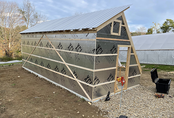 When we priced out this building, the components added up quickly. It is hands down more expensive to build than a traditional high tunnel with a propane heater. However, the way we looked at it is, if we spend the money upfront on a well-built, insulated building that holds heat, it will be in use for many years to come. Subsequent years will have a higher profit margin than if we were not using passive solar.