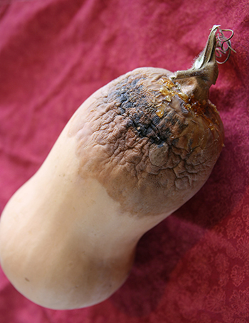Fig. 3. Advancing black rot infection on butternut squash. Photo by Eric Sideman.</span ></em >