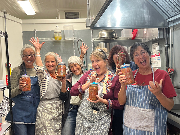 Happy participants showing off their quarts of fermented salsa to take home following a workshop. Ingredients were all sourced from the farm and provided a value-added outlet for surplus tomatoes. Class sizes were limited and a hands-on demonstration was provided.