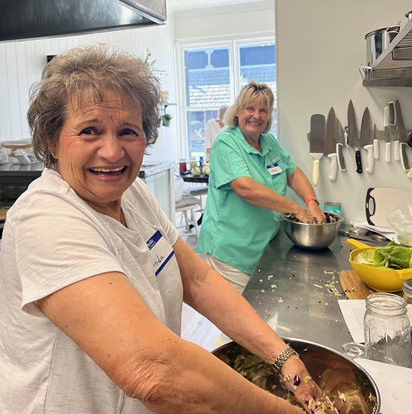 Participants making sauerkraut at a fermentation workshop offered by the author. The interactive workshops utilized a commissary kitchen space in the author’s town.