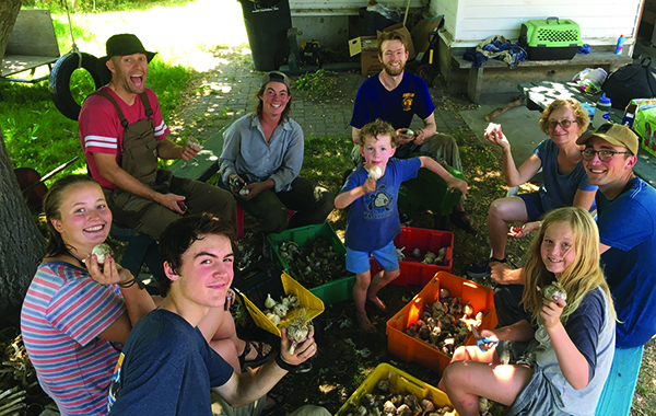 Farm team and family cleaning garlic on the author’s farm. All images courtesy of the author.
