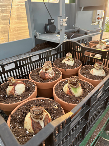 In addition to bulb crates, the machine works great on individual pots and, of course, flats for starting seeds. We used it to fill hundreds of amaryllis pots, saving hours of manual labor.