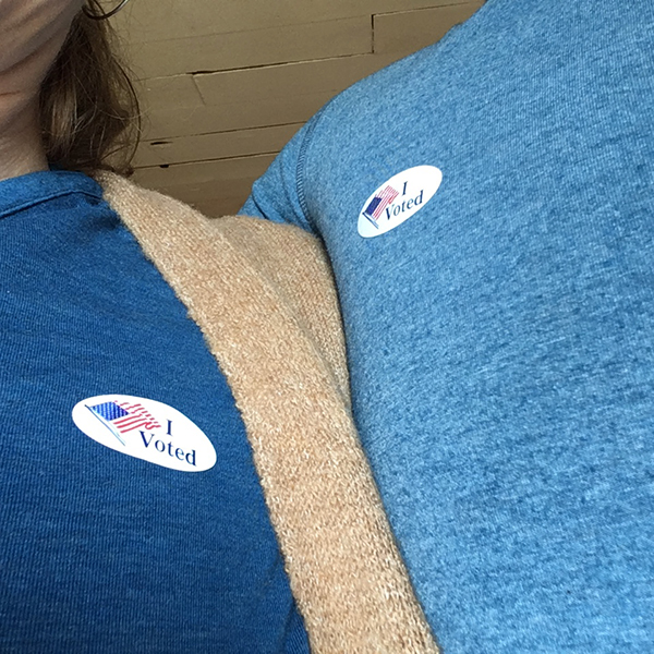 The minimum bar for local political engagement? Voting in every election! You might even get a cool sticker! (In Oregon, where the author lives, voting is all done by mail and there are usually no stickers involved, but she and her husband bought these to share with supporters when he ran for local elected office in 2018.)
