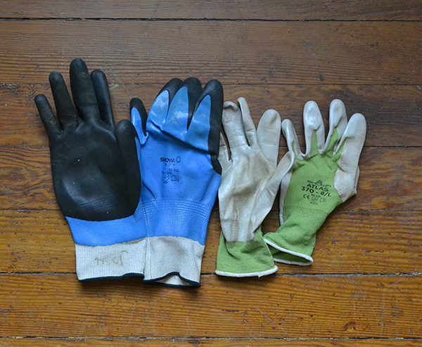 L to R Atlas 660, Showa 630 and synthetic glove liners are my winter harvest and wash-and-pack gloves of choice when it’s cold out.