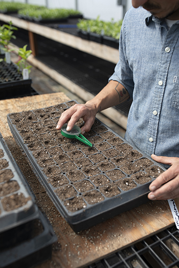 Seedling health begins in the soil. We find that sowing into a relatively high fertility seedling mix gives the best results for most of the species we’re working with. Both photos by Chris Benzakein.