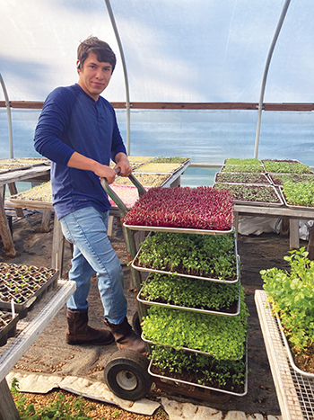 Jose with the microgreens.