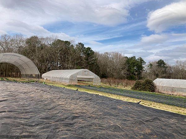 Nematodes in the tunnels were a big concern. They have tried solarization and applied a nematicide through the driplines with good results so far. Insect barrier on the tunnel entrances and sides prevent leaf-footed bugs and stink bugs from damaging their tomatoes in the summer.