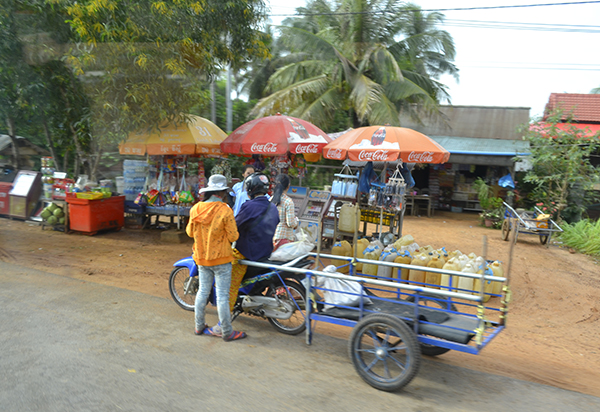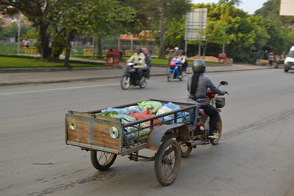 A few years later I had the opportunity to travel in Cambodia and to visit farms there. The number one most common transportation option, for pretty much everything, was small motorcycles or motor scooters, just as it is in many other parts of the world. As much as I love pedaling my own bicycle, I could see how these small motorcycles and motor scooters combined the ability of bicycles to travel on narrow paths, and to navigate tight spaces, but with the motors, larger wheels, and better brakes they were also capable of pulling large loads, often in very large trailers hooked to a hitch just behind the driver’s seat.