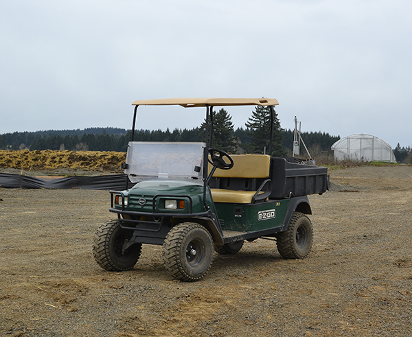The farm I apprenticed on in the 1990’s had two electric utility carts. They were two of the every-day drivers and material movers around the ranch. These were what most people would recognize as a golf cart, but with a small dump truck bed instead of holders for golf clubs. Carts like these versatile low speed vehicles (low speed vehicles being a class of vehicle maxing out under 25 miles per hour) have been the used by grounds keepers on golf courses, college campuses and in many parks for a long time, both in gas powered and electric versions. The electric versions tend to be a little more expensive up front, but they have a lot of advantages over the gas-powered versions. In my experience they also have advantages over larger trucks that I’ve driven on farms.