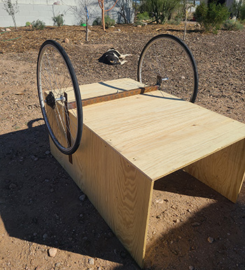 Meadow Lynn’s cart fits five bulb crates all lined up and centers the weight over the wheels.