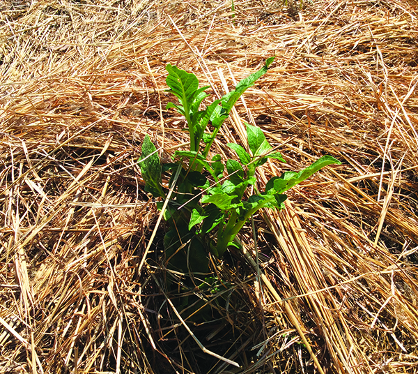 Potatoes are said to be a “cleaning” crop, as if they did the weeding themselves. Not so. Any cleaning that takes place is a result of cultivation. As with many plants, the initial growth stage is the most critical for weed control. Hilling in sunny weather once the plants are six inches (15 cm) tall (piling soil over most of the leaves) can deal with lots of weeds in a timely way, especially if the machine work is followed by the crew passing through the field hoeing. Organic mulches also reduce weeds.