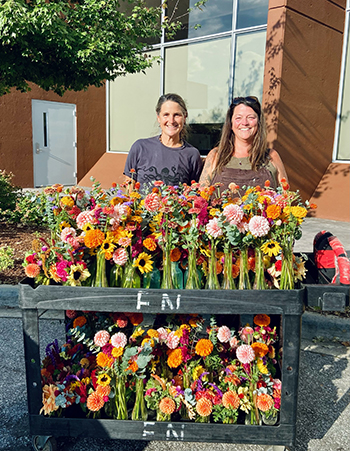Vanessa Campbell (L) and Mandy Hornick with some of the flowers they donated after markets were closed. Photo courtesy of Vanessa Campbell.