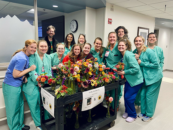 Nurses with some of the flowers that were donated. Photo courtesy of Vanessa Campbell.