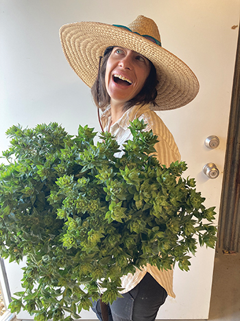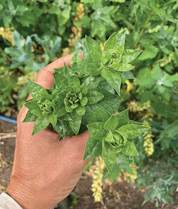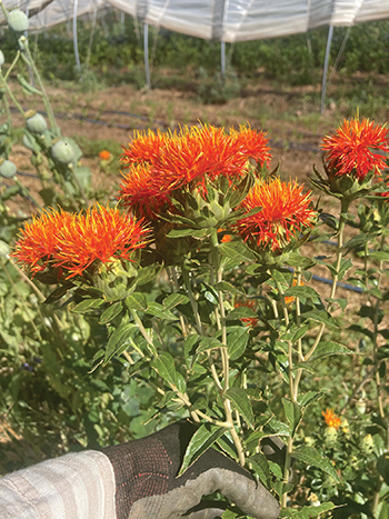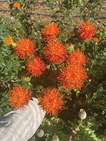 The author with some safflower that has formed flower buds and is ready for use as greenery. All photos courtesy of the author.