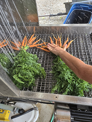 In this article, I report on the main reasons I used to justify the purchase of an AZS Rinse Conveyor. We affectionately call it “Petey.” Petey was a $12,300 investment for just the base machine and an additional $3,800 for add-ons. We also share some specific crop tips from having used Petey for the last five months (July through November 2025). A great review of the AZS was written in the October 2024 issue of GFM. Additionally, the University of Vermont Ag Engineering website has very detailed videos and farmer interviews and profiles of the machine and other common methods of washing produce.