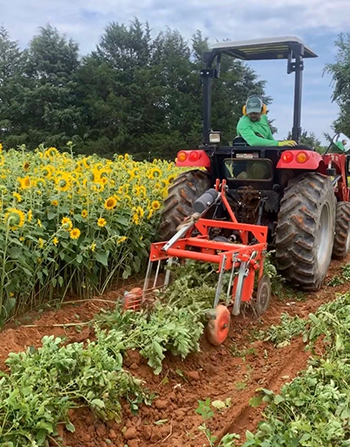 Ross Mickens of Open Door Farm in Cedar Grove, North Carolina, using the Tool Legit co-op’s Checchi & Magli potato digger. Photo by Jillian Mickens.