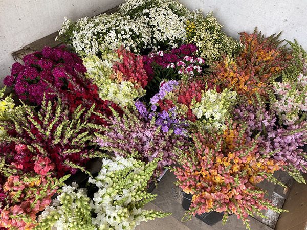 Since we are harvesting for direct sales at our farmers market stands, we cut when at least five florets are open. I’ve found that retail customers prefer to buy a stem that is more fully opened. On the flip side, as a farmer and a business owner, you want to ensure that your customer gets a flower with a long vase life. So, we walk that line of harvesting at the perfect point for both a sale and long vase life.