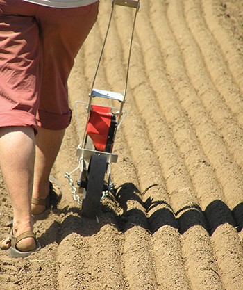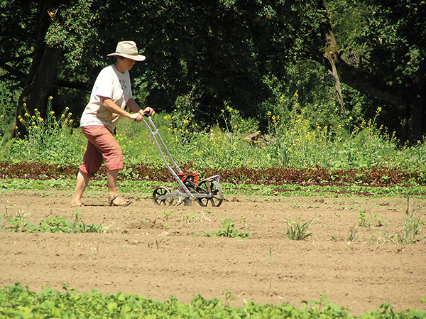 Pre-forming little furrows using a ring roller behind the tractor made it much faster to seed salad mix with the Earthway and always improved germination. All photos courtesy of the author.