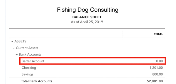 As a last step, create an up-to-date Balance Sheet for your business to be sure that you properly entered the invoice and bill for the barter. If entered correctly, the balance of the Barter Account should be zero. This is because you sold and bought the same value of goods and services, bookkeeping in exchange for tomatoes.