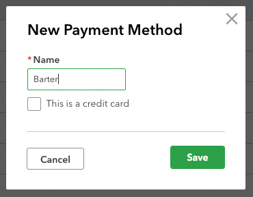 •In the pop-up screen, simply name the new payment method “Barter,” and click “Save.”