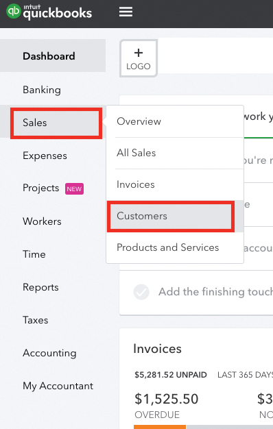 •On the left drop down menu hover over “Sales” and click on “Customers.”